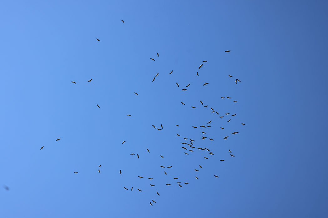 Пара белых аистов снова гнездилось в п. Березка, буквально в нескольких десятках метров от границы Стрелецкого участка. В конце лета на этом участке была впервые отмечена стая мигрирующих белых аистов численностью более ста птиц.