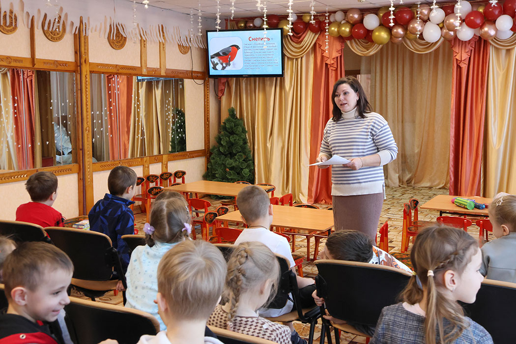 Продолжается совместная работа с МБДОУ «Детский сад комбинированного вида № 129» г. Курска по экологическому воспитанию дошкольников. В это раз занятия были посвящены зимующим птицам. В ходе лекции ребята узнали, какие птицы называются перелетными, зимующими и кочующими, как птицы приспосабливаются к холодам и чем люди могут помочь пернатым в зимний период. Дети вспомнили, что основу птичьего рациона зимой составляют нежареные семена подсолнечника, несолёное сало, сушеные ягоды. А еще ребята с удовольствием отгадывали загадки, слушали голоса птиц, играли и рисовали.